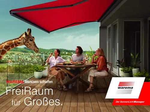 WAREMA Premium-Markisen verwandeln Ihren Balkon oder Ihre Terrasse in einen Ort, an dem der Fantasie kaum Grenzen gesetzt sind.