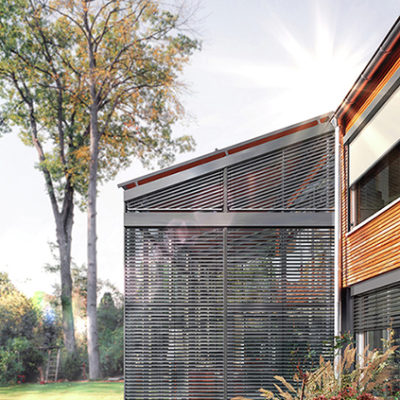 Maßgeschneiderter Sonnenschutz für innovative Fenster – WAREMA Schräg-Außenjalousien eignen sich für nahezu alle asymmetrischen Fensterformen. Optisch passt sich die Schräg-Außenjalousie harmonisch unseren anderen Außenjalousietypen an – so entsteht ein einheitliches Erscheinungsbild.